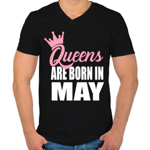 1 kép PRINTFASHION A királynők májusban születnek - Férfi V-nyakú póló - Fekete