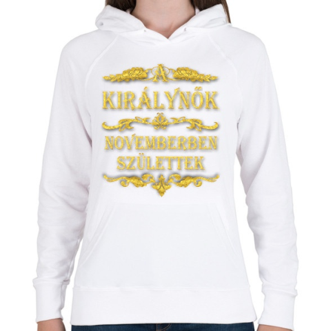 1 kép PRINTFASHION A királynők novemberben születtek - Női kapucnis pulóver - Fehér