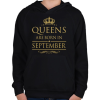 1 kép PRINTFASHION A királynők szeptemberben születnek - Gyerek kapucnis pulóver - Fekete