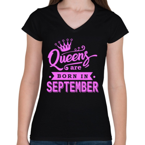 1 kép PRINTFASHION A királynők szeptemberben születnek - Női V-nyakú póló - Fekete