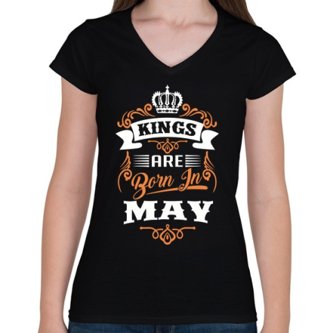 1 kép PRINTFASHION A királyok májusban születnek - Női V-nyakú póló - Fekete