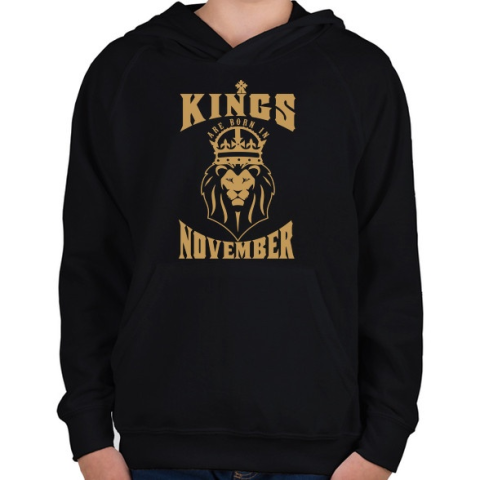 1 kép PRINTFASHION A királyok novemberben születtek - Gyerek kapucnis pulóver - Fekete