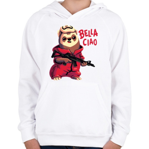 1 kép PRINTFASHION A kis lázadó - La casa de papel - Gyerek kapucnis pulóver - Fehér