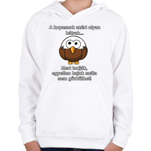 1 kép PRINTFASHION A kopaszok bátrak... - Gyerek kapucnis pulóver - Fehér