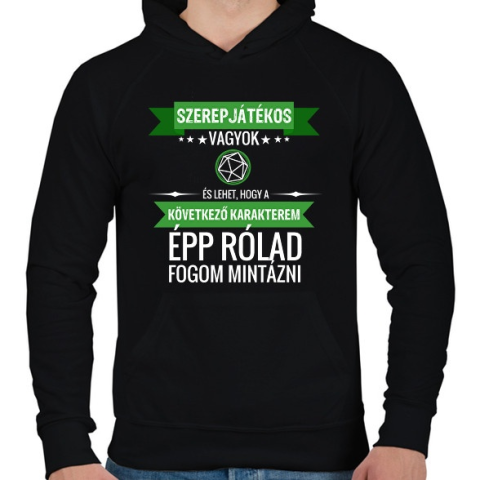 1 kép PRINTFASHION A következő karakterem te leszel (játékos) - Férfi kapucnis pulóver - Fekete