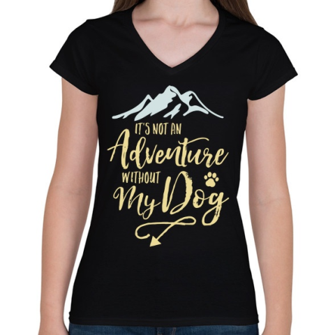 1 kép PRINTFASHION A kutyám nélkül nem kaland. - Női V-nyakú póló - Fekete