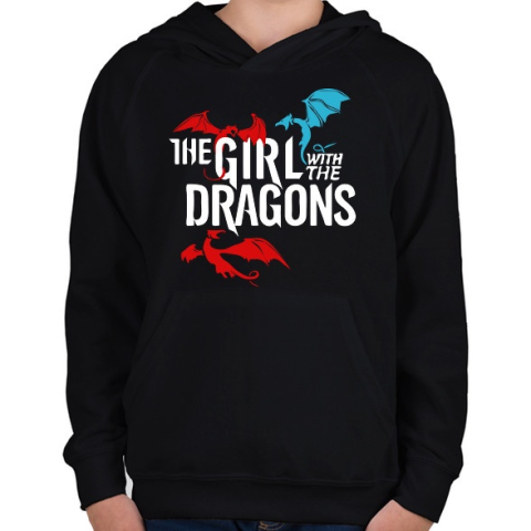 1 kép PRINTFASHION A lány és a sárkányok - Gyerek kapucnis pulóver - Fekete