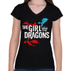 1 kép PRINTFASHION A lány és a sárkányok - Női V-nyakú póló - Fekete