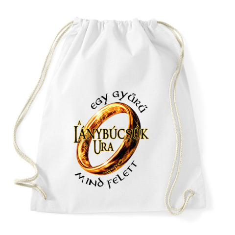 1 kép PRINTFASHION A Lánybúcsúk Ura, egy gyűrű mind felett! - Sportzsák, Tornazsák - Fehér