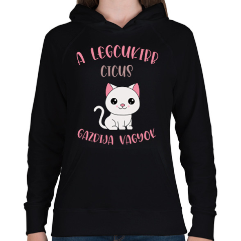 1 kép PRINTFASHION A legcukibb cicus gazdija - Női kapucnis pulóver - Fekete