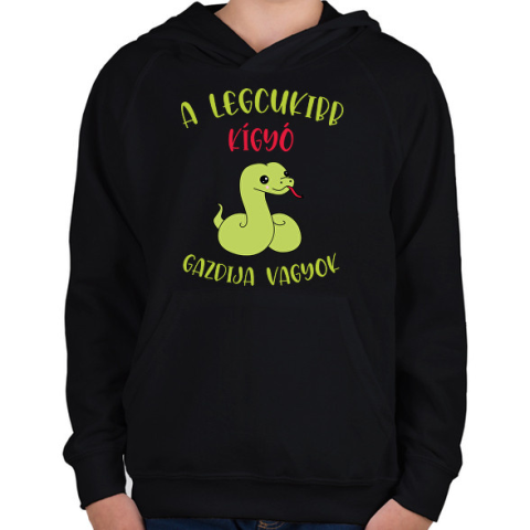 1 kép PRINTFASHION A legcukibb kígyó gazdija - Gyerek kapucnis pulóver - Fekete