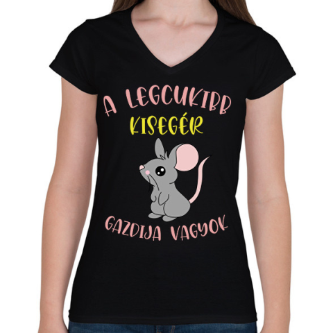 1 kép PRINTFASHION A legcukibb kisegér gazdija - Női V-nyakú póló - Fekete