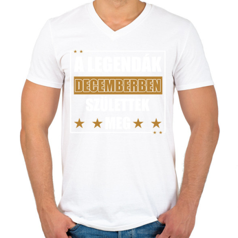 1 kép PRINTFASHION A legendák decemberben születtek meg - Férfi V-nyakú póló - Fehér