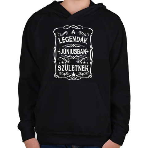 1 kép PRINTFASHION A legendák júniusban születtek - Gyerek kapucnis pulóver - Fekete
