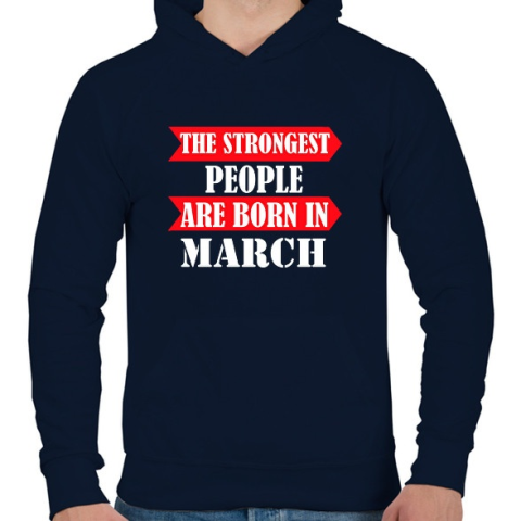 1 kép PRINTFASHION A legerősebb emberek márciusban születnek - Férfi kapucnis pulóver - Sötétkék