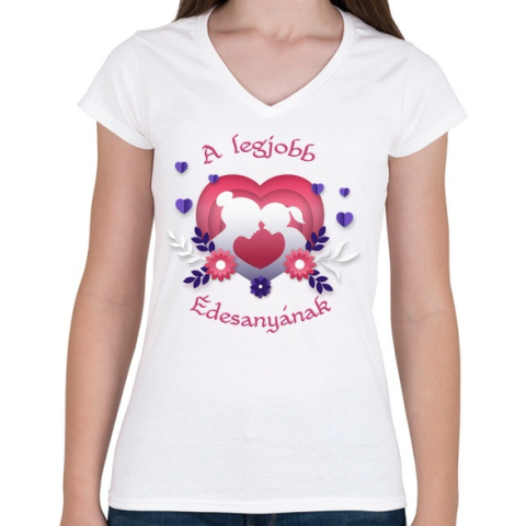 1 kép PRINTFASHION A legjobb édesanya - Női V-nyakú póló - Fehér