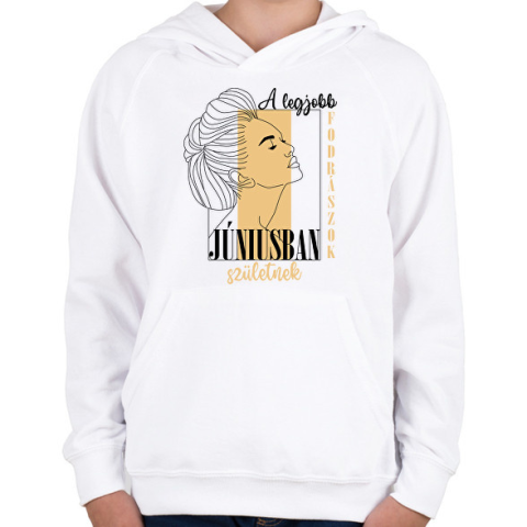 1 kép PRINTFASHION A legjobb fodrász - Hónappal (fekete) - Gyerek kapucnis pulóver - Fehér