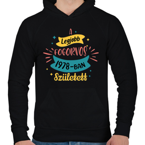 1 kép PRINTFASHION A legjobb fogorvos - Évszámmal - Férfi kapucnis pulóver - Fekete