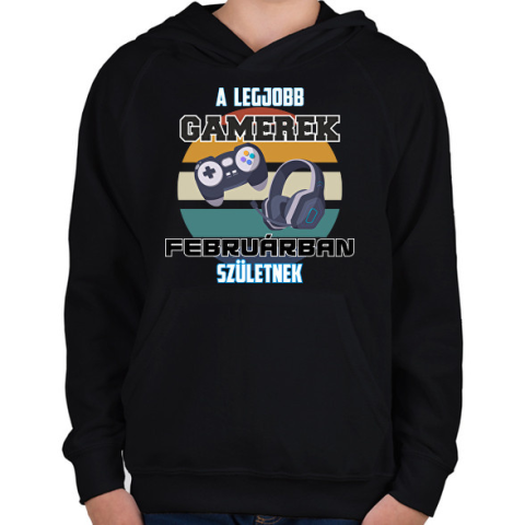 1 kép PRINTFASHION A legjobb Gamerek Februárban születnek - Gyerek kapucnis pulóver - Fekete