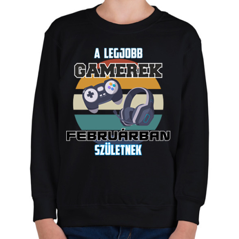 1 kép PRINTFASHION A legjobb Gamerek Februárban születnek - Gyerek pulóver - Fekete