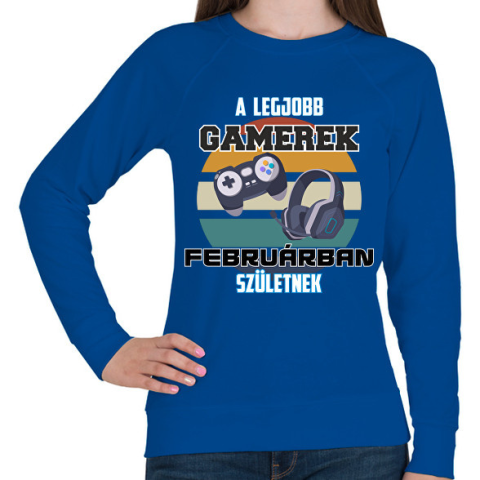 1 kép PRINTFASHION A legjobb Gamerek Februárban születnek - Női pulóver - Királykék