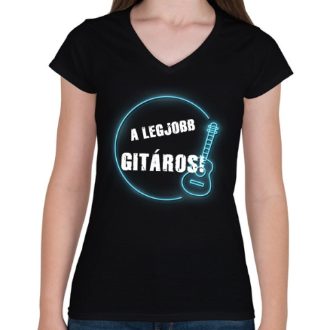 1 kép PRINTFASHION A legjobb gitáros - Női V-nyakú póló - Fekete