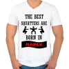 1 kép PRINTFASHION A legjobb guggolók márciusban születnek - Férfi V-nyakú póló - Fehér