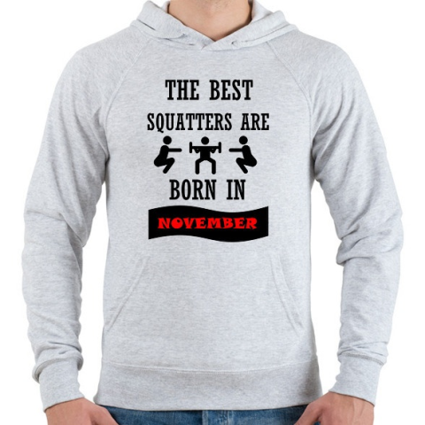 1 kép PRINTFASHION A legjobb guggolók novemberben születnek - Férfi kapucnis pulóver - Sport szürke