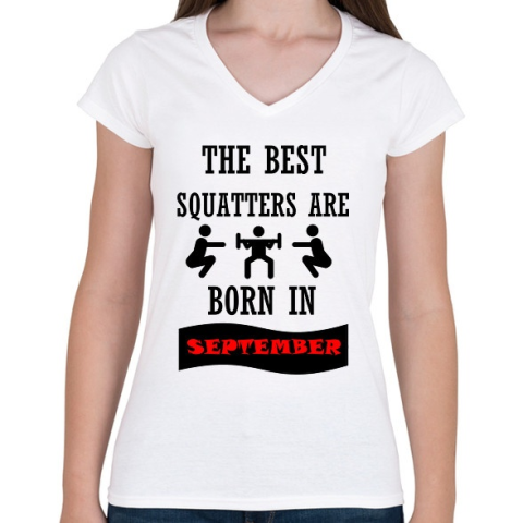 1 kép PRINTFASHION A legjobb guggolók szeptemberben születnek - Női V-nyakú póló - Fehér