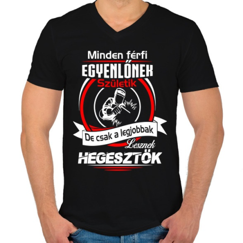 1 kép PRINTFASHION A legjobb hegesztők - Férfi V-nyakú póló - Fekete