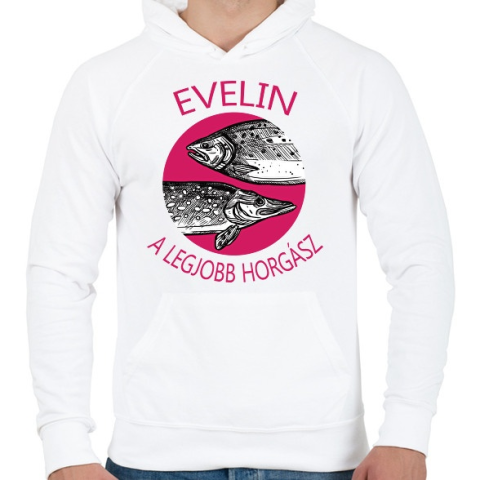 1 kép PRINTFASHION A legjobb horgász - Női névvel - Férfi kapucnis pulóver - Fehér