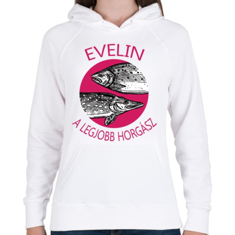 1 kép PRINTFASHION A legjobb horgász - Női névvel - Női kapucnis pulóver - Fehér