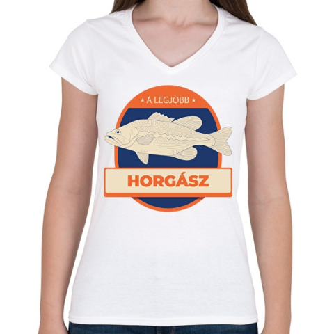 1 kép PRINTFASHION A legjobb horgász - Női V-nyakú póló - Fehér
