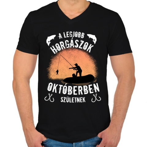 1 kép PRINTFASHION a legjobb horgászok - Férfi V-nyakú póló - Fekete