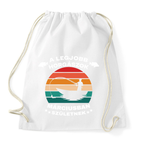 1 kép PRINTFASHION A legjobb horgászok márciusban születnek - Sportzsák, Tornazsák - Fehér