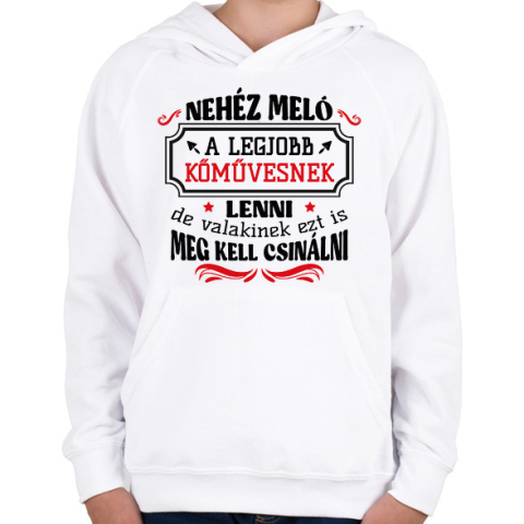 1 kép PRINTFASHION A legjobb kőművesnek lenni - Gyerek kapucnis pulóver - Fehér