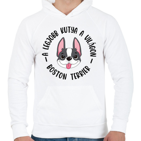 1 kép PRINTFASHION A legjobb kutya a világon - Boston terrier - Férfi kapucnis pulóver - Fehér