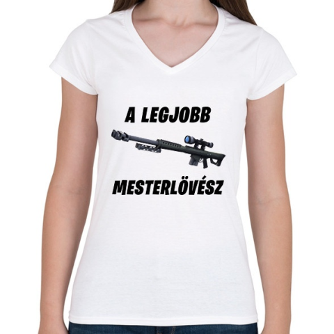 1 kép PRINTFASHION A legjobb mesterlövész - Fortnite (Fekete) - Női V-nyakú póló - Fehér