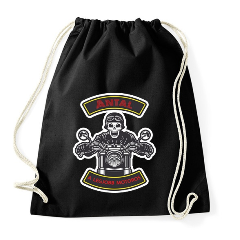 1 kép PRINTFASHION A legjobb motoros - Névvel - Sportzsák, Tornazsák - Fekete