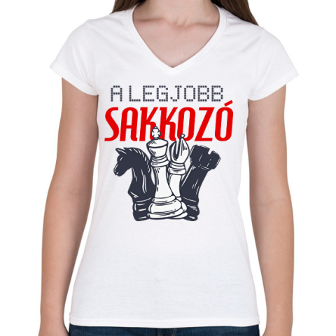 1 kép PRINTFASHION A legjobb sakkjátékos - Női V-nyakú póló - Fehér