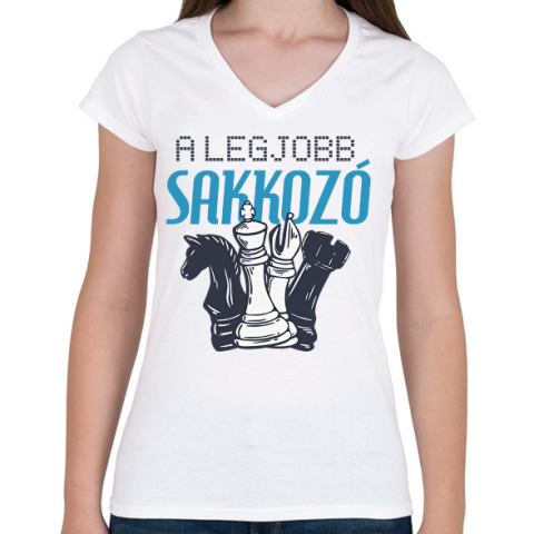 1 kép PRINTFASHION A legjobb sakkozó - Női V-nyakú póló - Fehér