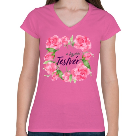 1 kép PRINTFASHION A legjobb testvér - Női V-nyakú póló - Rózsaszín