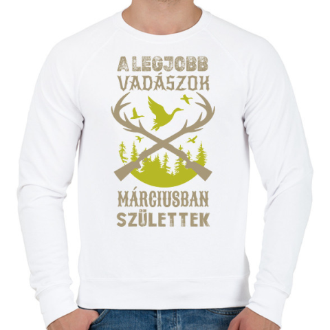 1 kép PRINTFASHION A legjobb vadászok márciusban születtek - Férfi pulóver - Fehér