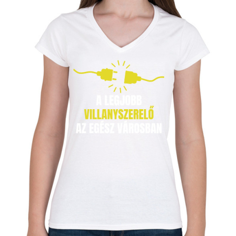 1 kép PRINTFASHION A legjobb villanyszerelő az egész városban - Női V-nyakú póló - Fehér