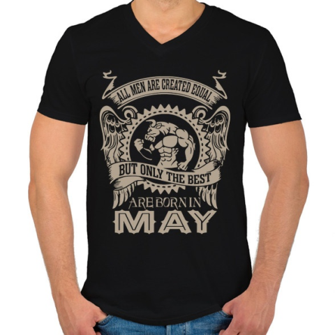 1 kép PRINTFASHION A legjobbak májusban születnek - Férfi V-nyakú póló - Fekete