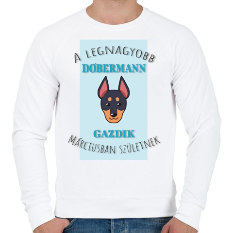1 kép PRINTFASHION A legnagyobb gazdi - Dobermann - hónappal - Férfi pulóver - Fehér