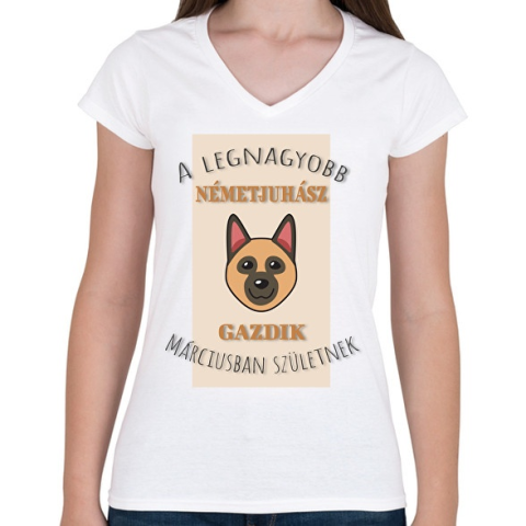 1 kép PRINTFASHION A legnagyobb gazdi - Németjuhász - hónappal - Női V-nyakú póló - Fehér
