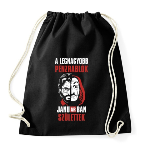 1 kép PRINTFASHION A legnagyobb pénzrablók januárban születtek - Sportzsák, Tornazsák - Fekete