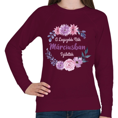 1 kép PRINTFASHION A legszebb nők márciusban születtek - Női pulóver - Bordó