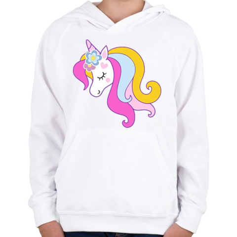 1 kép PRINTFASHION A legszebb unikornis - Gyerek kapucnis pulóver - Fehér
